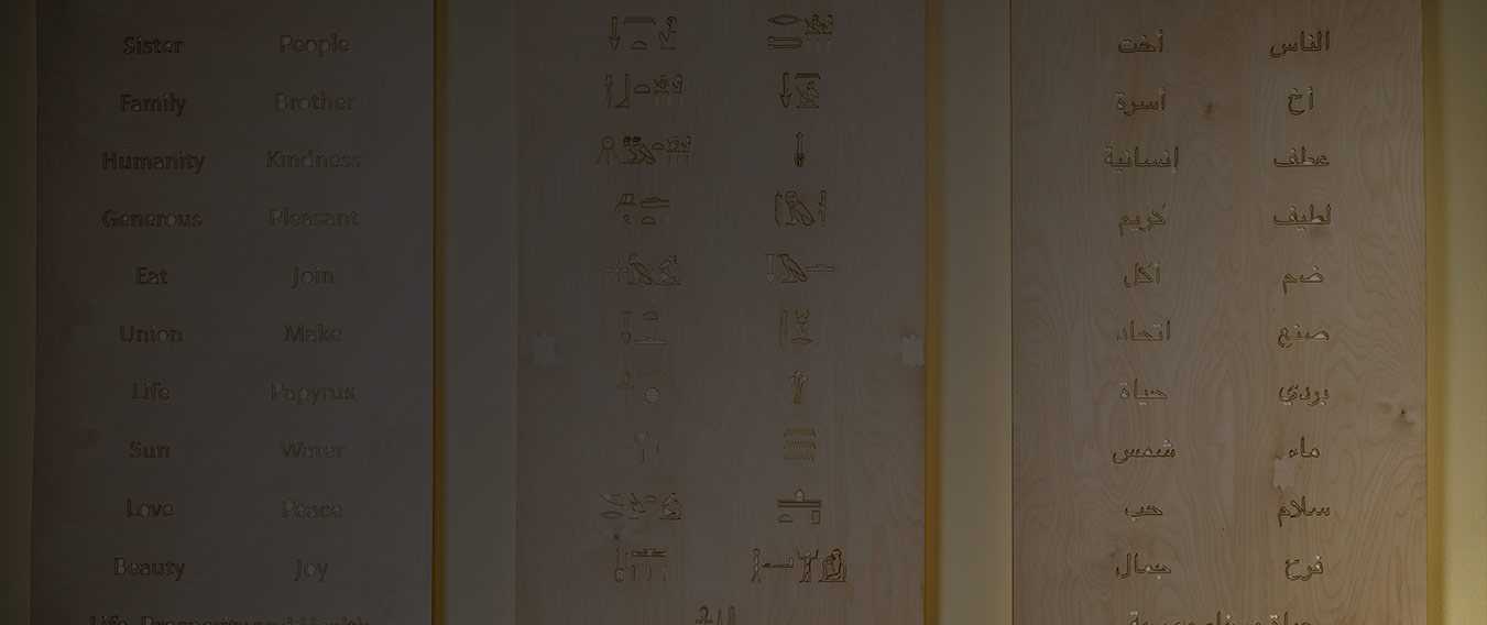 When visiting our location on the Danforth, you may have noticed an illustration of three languages side-by-side. This was created to present a view of the connection of the past, present, and our beautiful multi-cultural society. We would like to thank Egyptologist Stacy Davidson for her help in creating this work, which was inspired by the Rosetta stone and its importance in unlocking a treasure-trove of knowledge about Ancient Egypt.